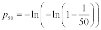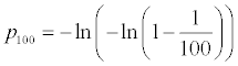 上記のα及びβは、ガンベル分布(Gumbel distribution)を表すためのパラメータです。αは尺度パラメータ、βはモード(最頻値)または位置パラメータを表します。以下は、ガンベル分布を累積分布関数として表した式です。